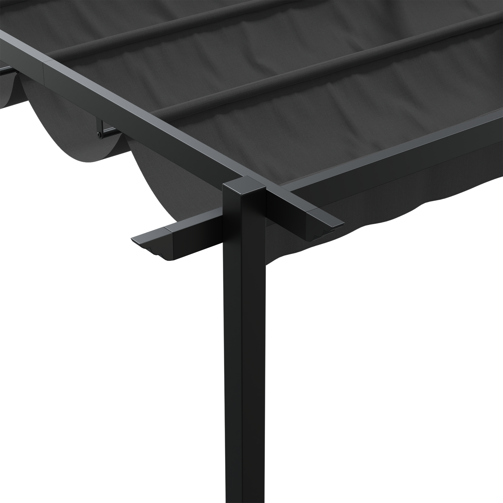 Nástěnný altán s roztažitelnou střechou nabízí moderní estetiku, která je perfektní pro každou zahradu nebo terasu. Kombinující styl s praktičností, tento altán poskytuje univerzální stinný úkryt pro rodinná setkání nebo tichou relaxaci. Jeho minimalistická forma a robustní materiály zajišťují, že doplní moderní venkovní prostory, vylepšující jak krásu exteriéru vašeho domova, tak venkovní funkčnost.