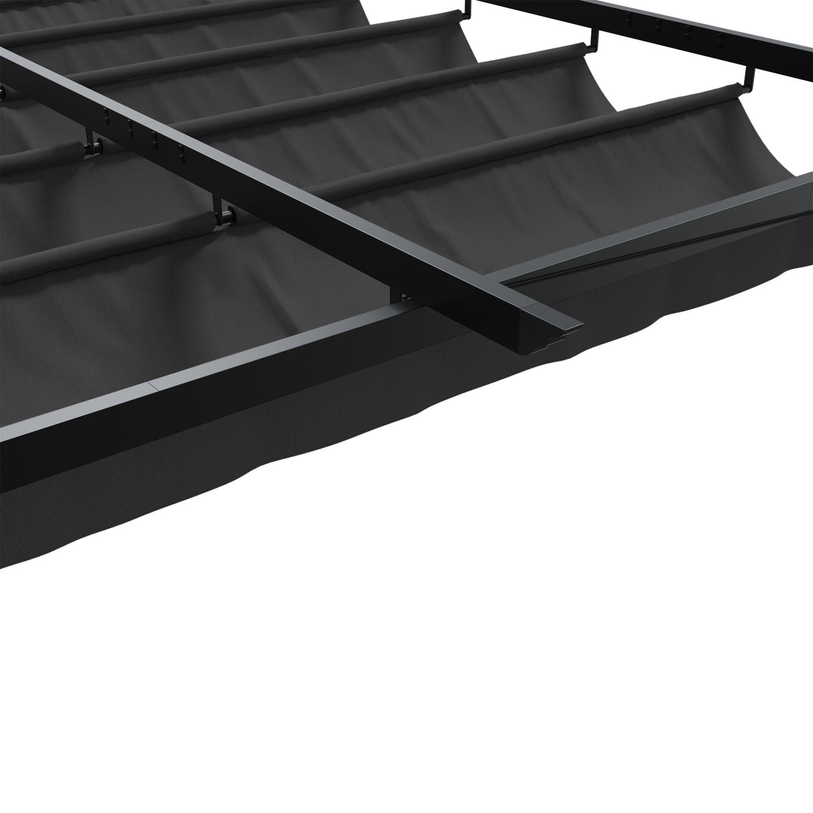 Nástěnný altán s roztažitelnou střechou nabízí moderní estetiku, která je perfektní pro každou zahradu nebo terasu. Kombinující styl s praktičností, tento altán poskytuje univerzální stinný úkryt pro rodinná setkání nebo tichou relaxaci. Jeho minimalistická forma a robustní materiály zajišťují, že doplní moderní venkovní prostory, vylepšující jak krásu exteriéru vašeho domova, tak venkovní funkčnost.