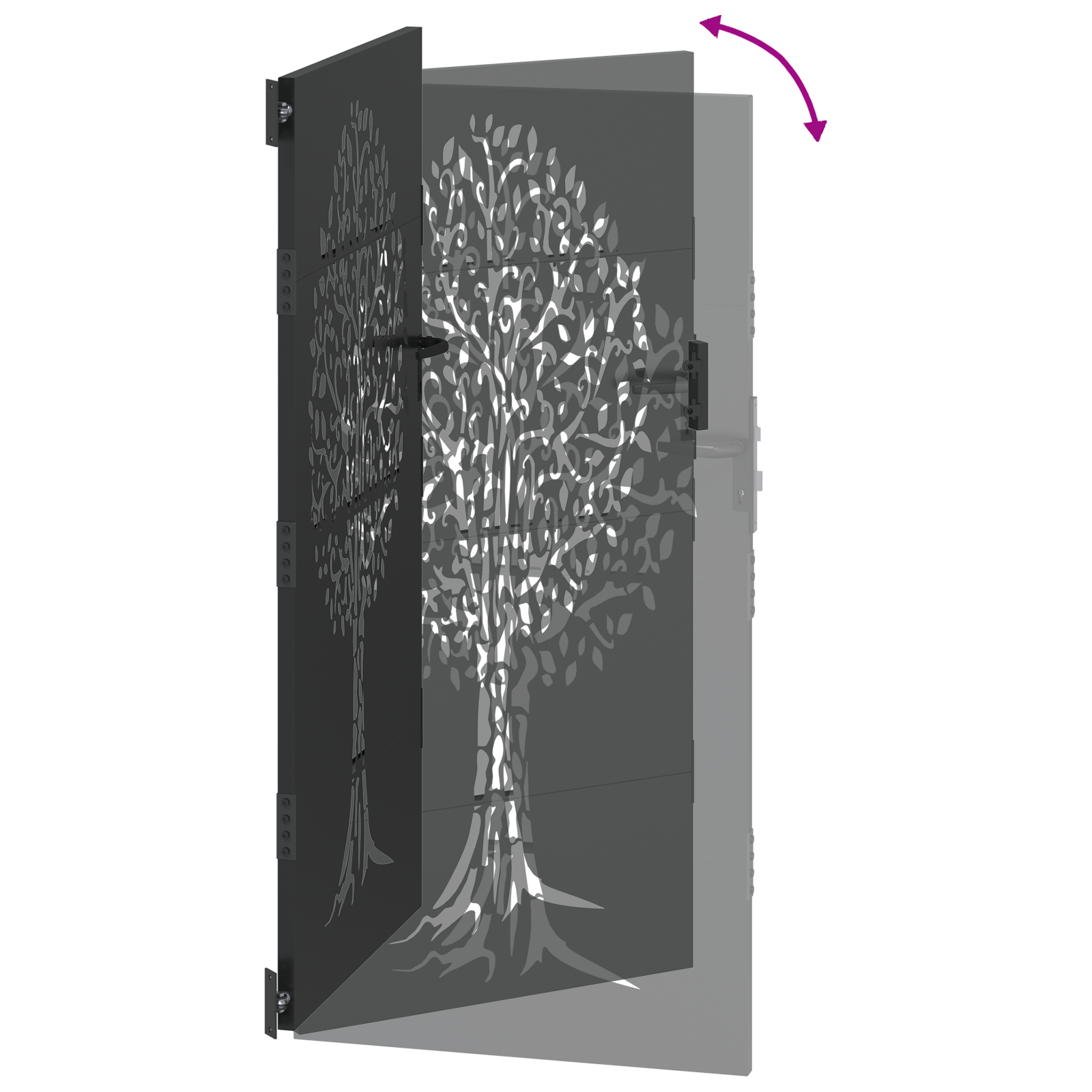• Stylový vzor stromu: Unikátní laserem vyřezávaný vzor stromu dodává bráně vizuální přitažlivost a umožňuje ji lehce zapadnout do vaší zahrady. Design se hodí jak pro moderní, tak tradiční interiéry.