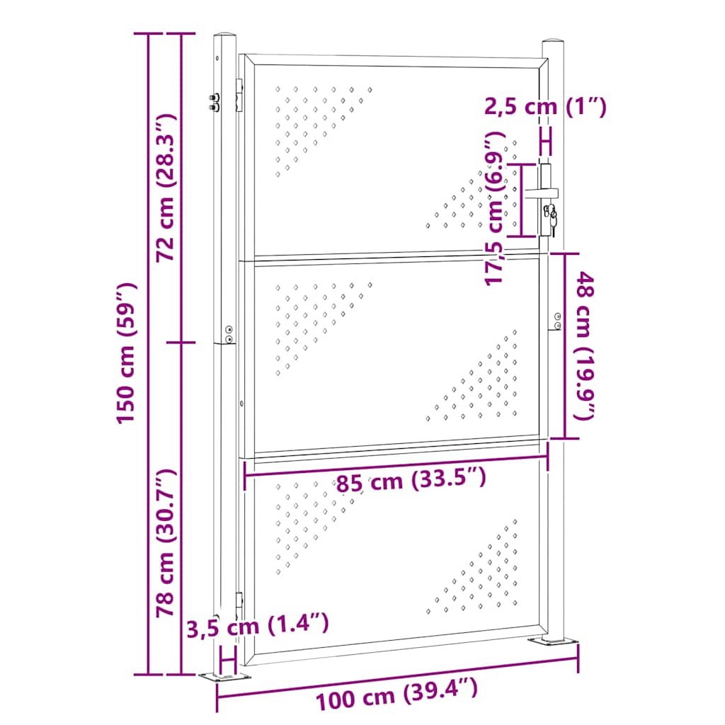 Tahle odolná zahradní brána je spojení moderního stylu a pevné funkčnosti, navržená přímo pro venkovní použití. Je vyrobena z nerezové oceli a má čistý obdélníkový tvar, který se hodí do každé zahrady nebo na terasu, a nabízí jak bezpečnost, tak styl. Její elegantní stříbrná barva dodává moderní nádech a dělá z ní středobod vašeho venkovního prostoru, který chrání váš majetek.