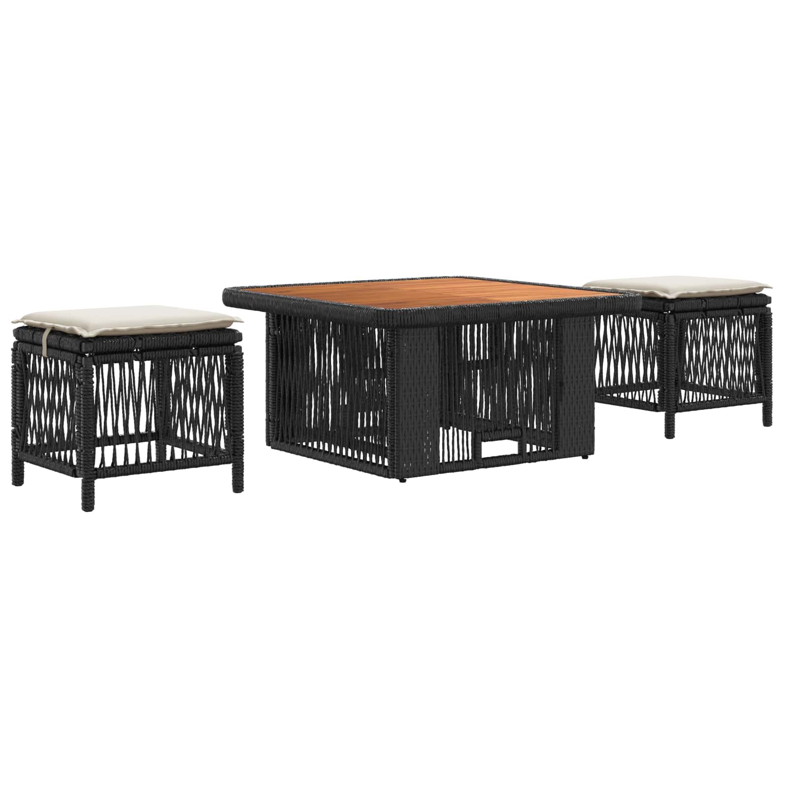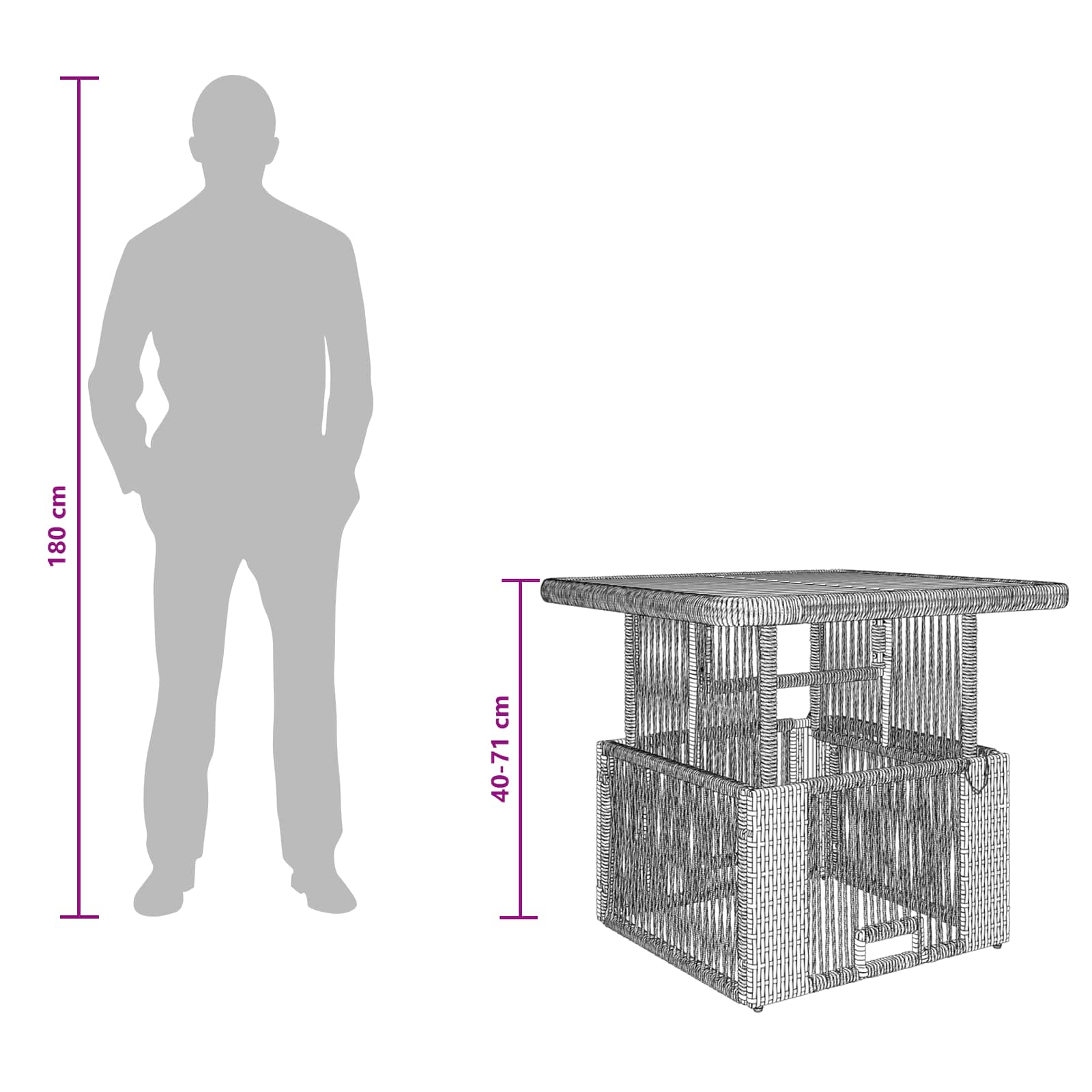 Tato zahradní jídelní souprava je stylový a univerzální doplněk do jakéhokoli venkovního prostoru. Kombinuje krásu poly ratanu a akáciového dřeva s odolnými, povětrnostně a UV zářením odolnými materiály. Obsahuje výškově nastavitelné stoly, pohodlné židle s odnímatelnými polštáři a nastavitelnými nožkami pro stabilitu, takže se snadno přizpůsobí různým potřebám.