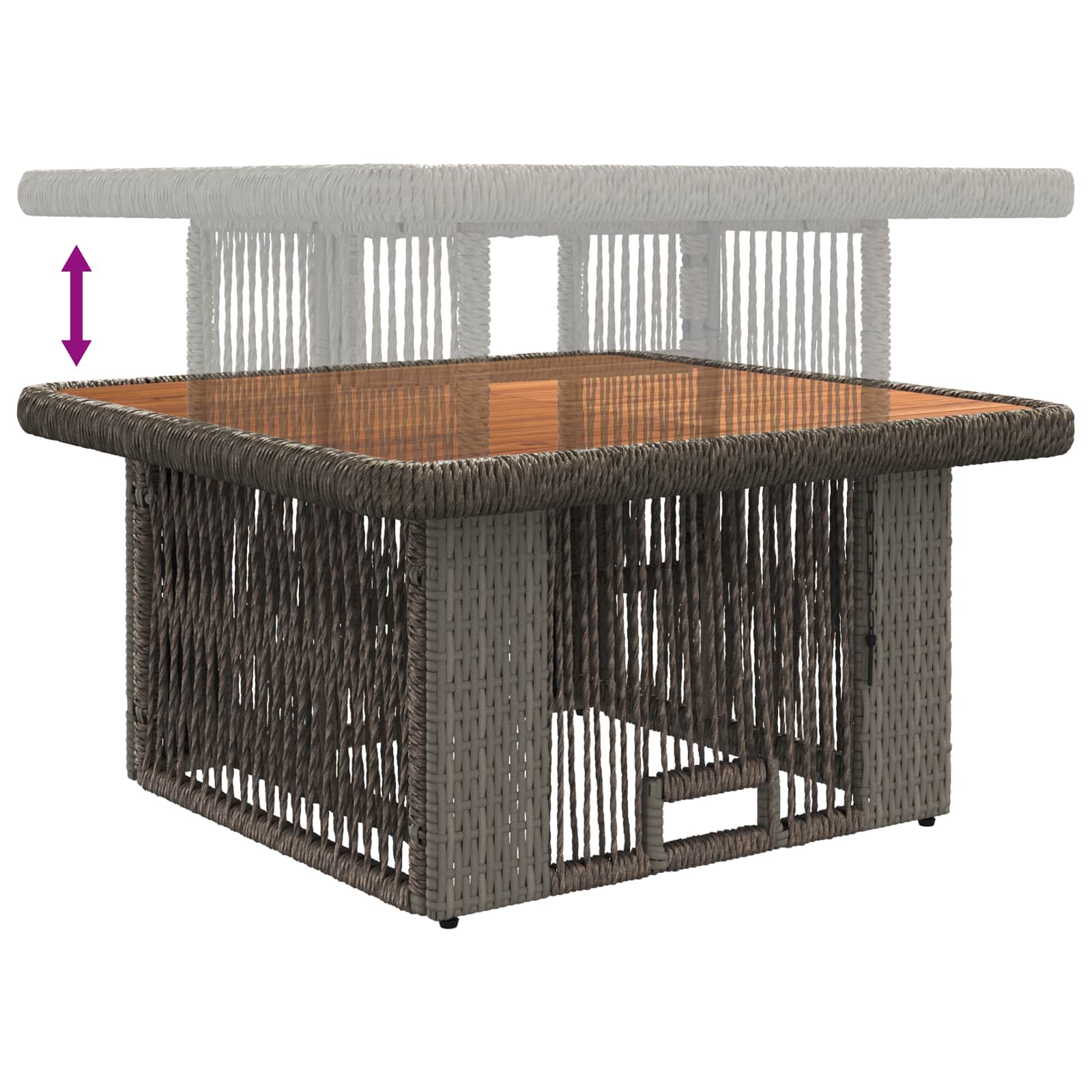 Tato zahradní jídelní souprava je stylový a univerzální doplněk do jakéhokoli venkovního prostoru. Kombinuje krásu poly ratanu a akáciového dřeva s odolnými, povětrnostně a UV zářením odolnými materiály. Obsahuje výškově nastavitelné stoly, pohodlné židle s odnímatelnými polštáři a nastavitelnými nožkami pro stabilitu, takže se snadno přizpůsobí různým potřebám.