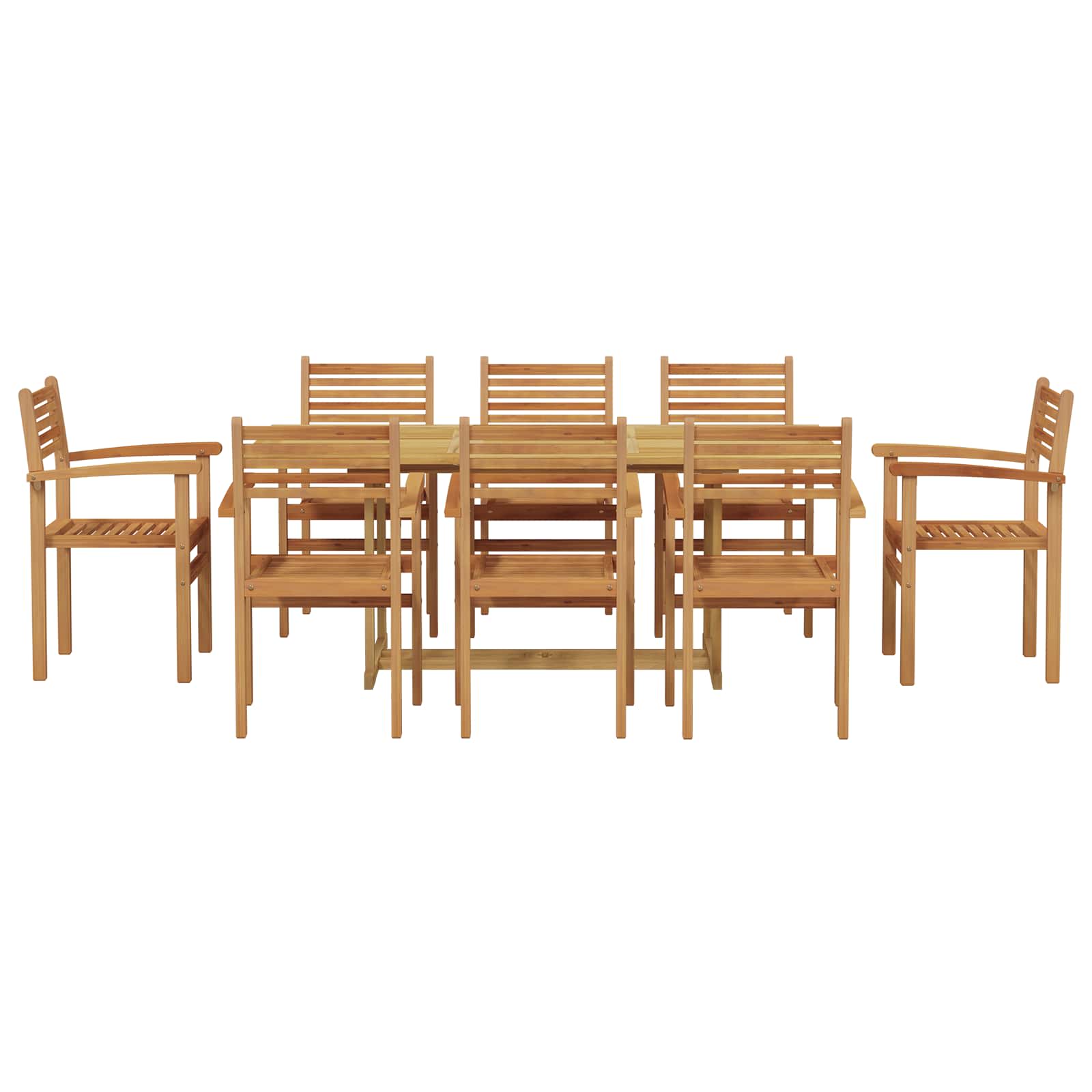 Tenhle zahradní jídelní set z teakového dřeva spojil moderní styl a praktickou funkčnost. Je ideální na rodinné setkání i elegantní večírky a přidá šarm do každé zahrady. Nabízí dost místa na sezení v hezkém uspořádání. Elegantní design s čistými liniemi a přírodním povrchem zvýrazní zeleň okolo vaší zahrady nebo terasy.