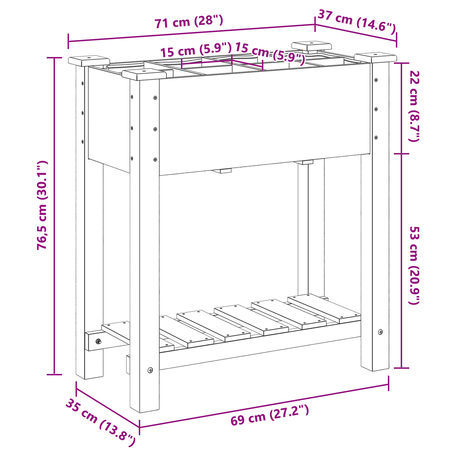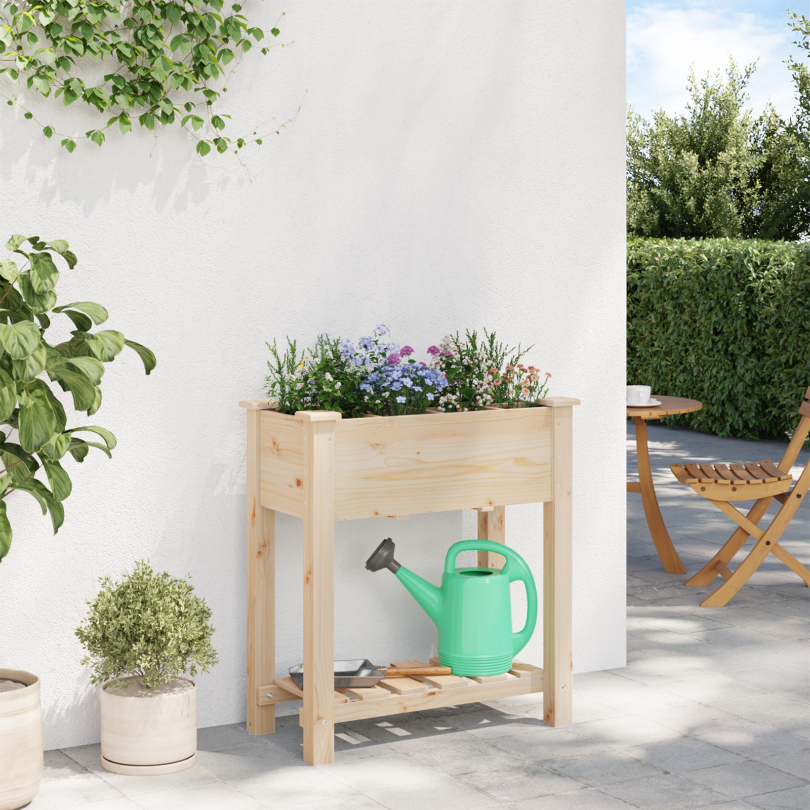 Tento minimalistický zahradní truhlík se policí přináší jemné kouzlo a přirozený dotek do každé venkovní zahrady nebo terasy. Navržený tak, aby byl hezký a jednoduchý, vytváří příjemnou atmosféru, která se hodí pro ty, co chtějí ukázat své rostliny s stylem. Jeho béžová barva nádherně zapadá do různých venkovních dekorací, čímž umocňuje klidnou atmosféru a přispívá k pohodě zahrady. Je perfektní pro ty, co chtějí pěstovat rostliny, a poskytuje dostatek prostoru pro jejich růst, což z něj dělá skvělou volbu pro dekorativní i praktické využití.