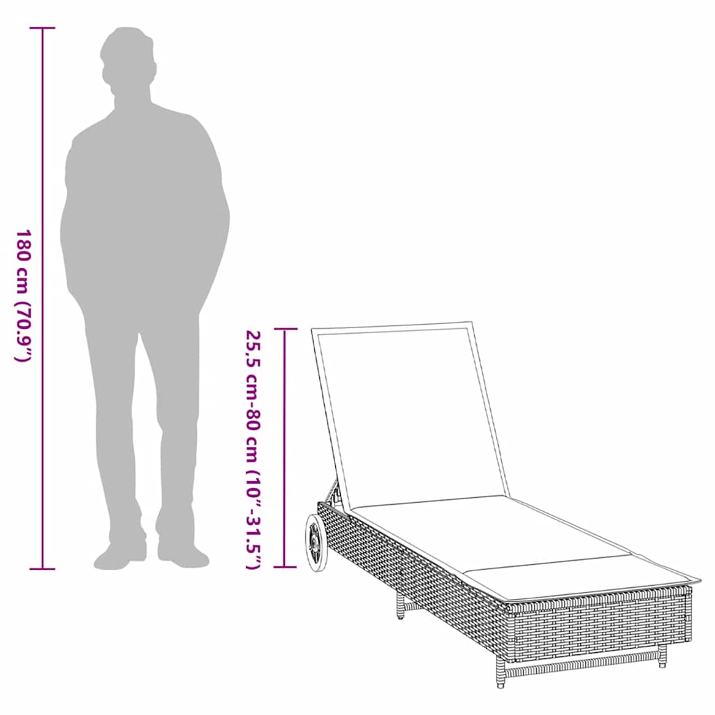 Zahradní lehátko s kolečky a poduškou světle šedé polyratan