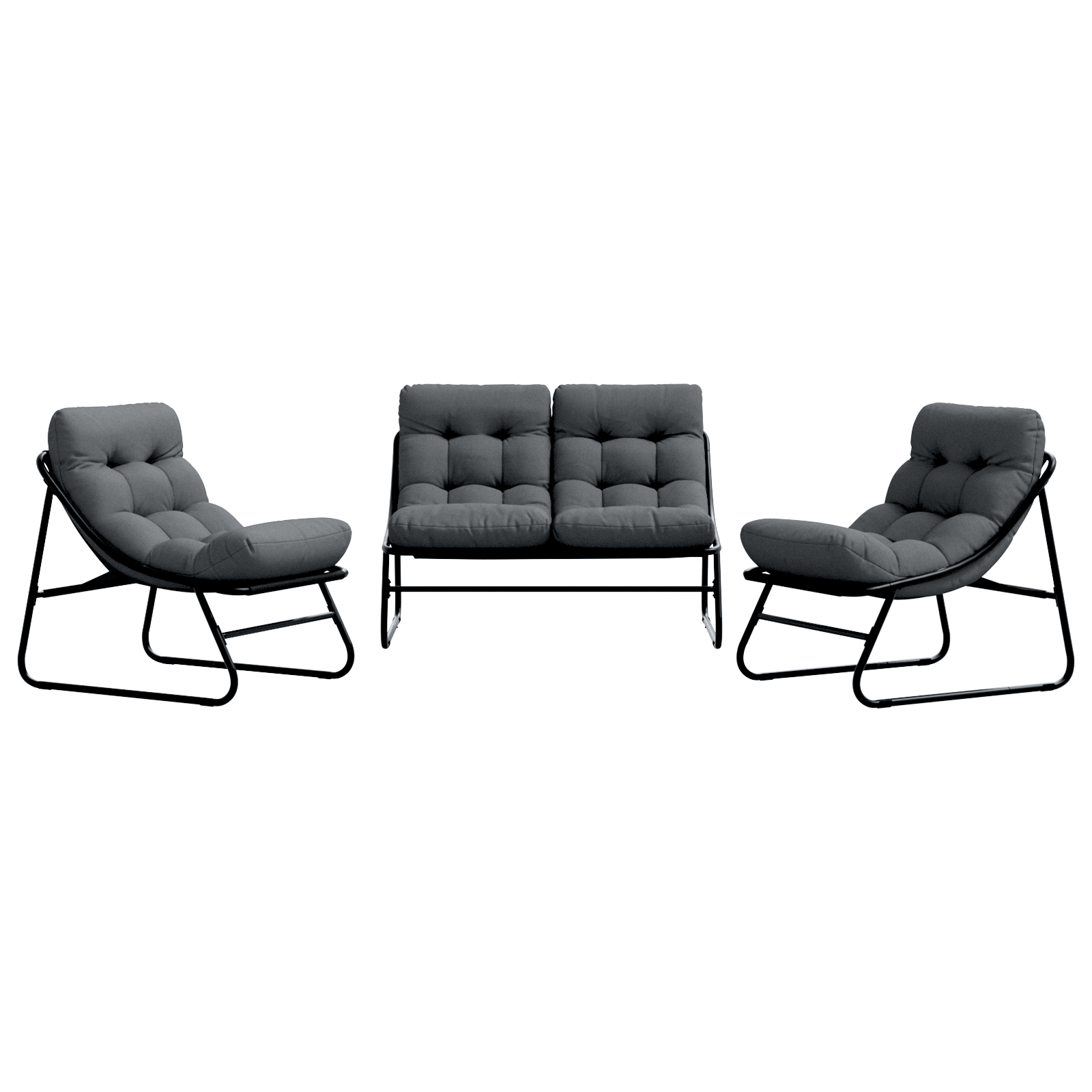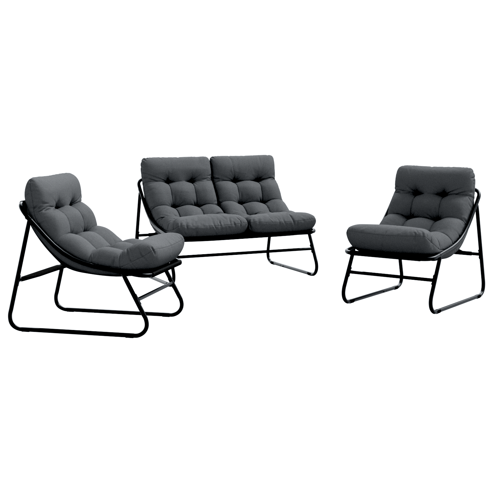 Tato zahradní souprava v moderním stylu přináší eleganci a praktičnost do vaší zahrady nebo na terasu. Její jednoduchý design je z práškově lakované oceli, což zaručuje, že vydrží. Díky odolným materiálům je ideální pro venkovní použití a zajišťuje pohodlné sezení, zatímco vypadá skvěle v jakémkoli moderním exteriéru.