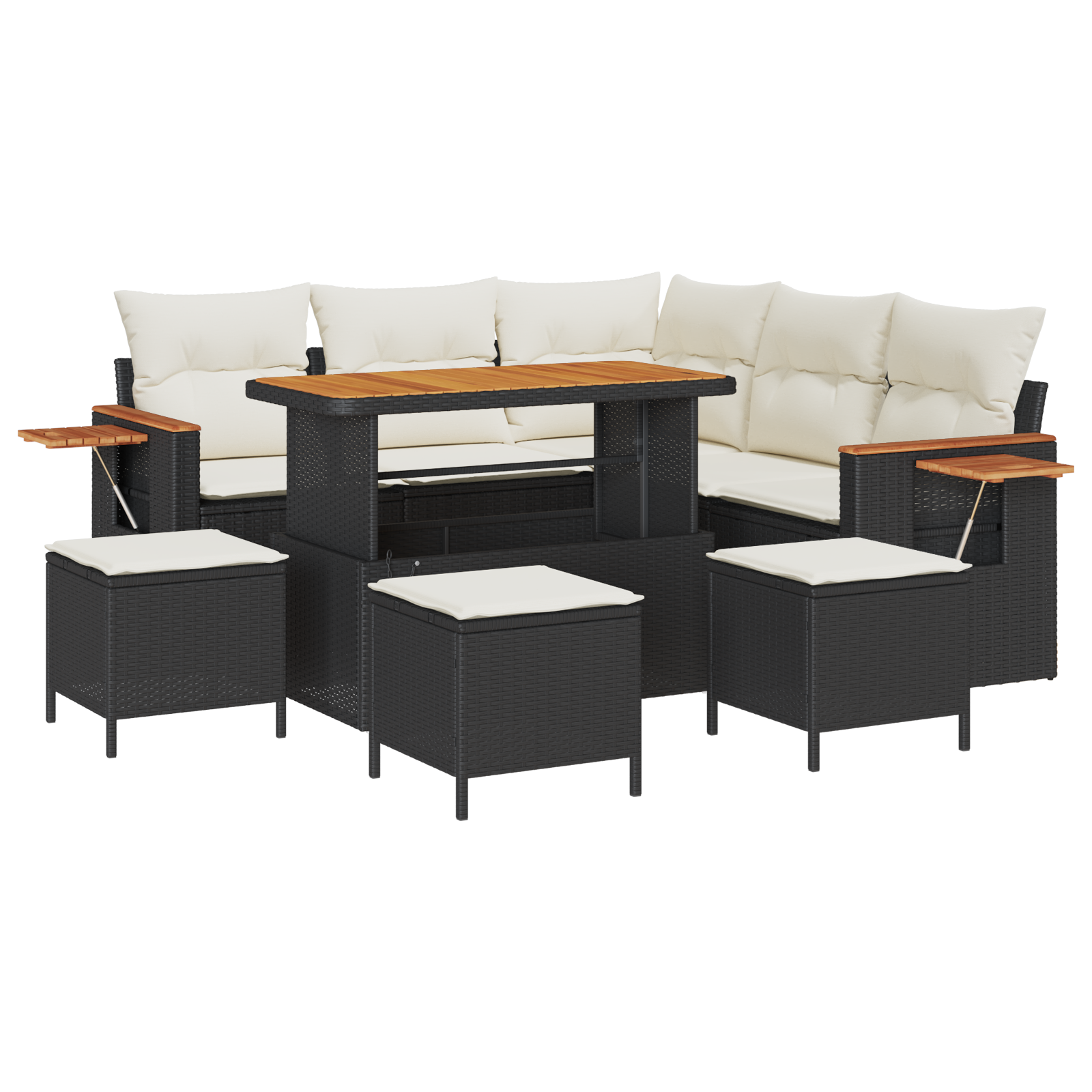 Tahle zahradní sofa sada, určená na terasy a do zahrad, přináší moderní eleganci s minimalistickým designem a čistýma liniema. Skvělá na povalování nebo organizování večírků, kombinuje pěkný poly ratan s odolným rámem z práškově lakované oceli. Tkaný povrch dodává zajímavý rozměr, zatímco kombinace počasí odolných materiálů zajišťuje, že si bude držet kvalitu napříč ročními obdobími. Sada je obohacena o pohodlné polštáře, které se dají kdykoliv vyjmout a vyměnit, takže se skvěle hodí pro různé styly a prostředí. To vše zajišťuje, že si užijete nejen společenské události, ale i klidné chvilky při relaxaci.