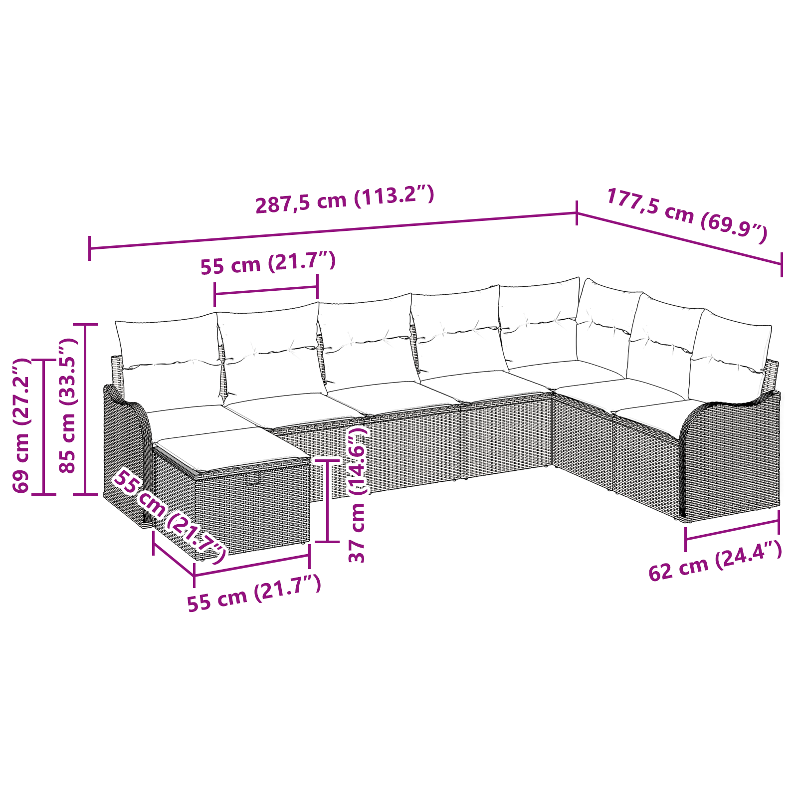 Tahle zahradní souprava nabízí elegantní a moderní řešení pro sezení venku. Je skvělá pro proměnu zahrad, teras nebo dvorů na příjemná místa pro relaxaci. S jednoduchým a funkčním designem, který má čisté linie a minimum ozdob, se parádně hodí k různým venkovním dekoracím. Tato všestranná souprava slibuje trvanlivost a styl, zvoucí rodinu a kamarády, aby si užili jarní a letní dny v pohodlí a eleganci.