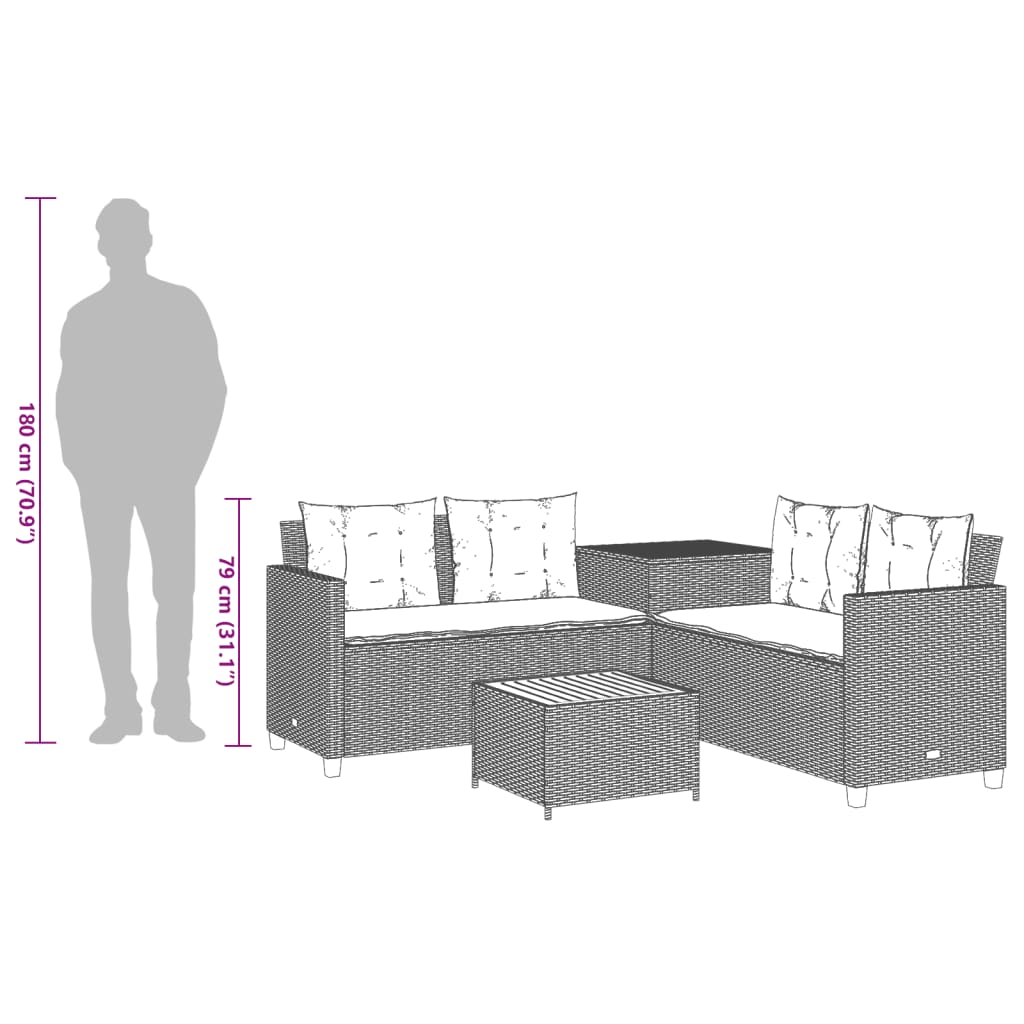 • 4místná zahradní pohovka s odkládacím stolkem: