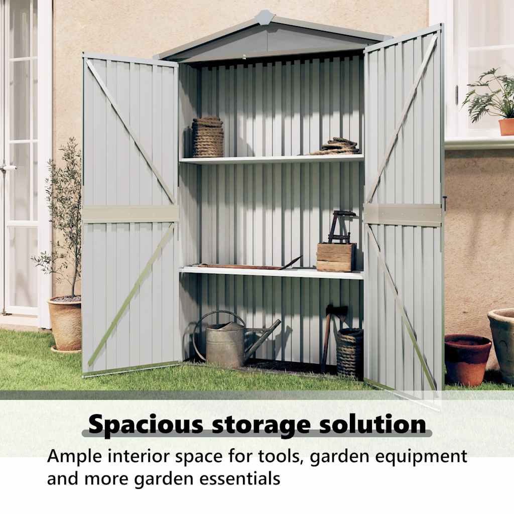 Stabilní a odolný: Tento venkovní domek je vyroben z pozinkované oceli, takže vyžaduje minimální údržbu a je velmi odolný. Domek nabízí ochranu před nečistotami, prachem, silným větrem a nepříznivým počasím.