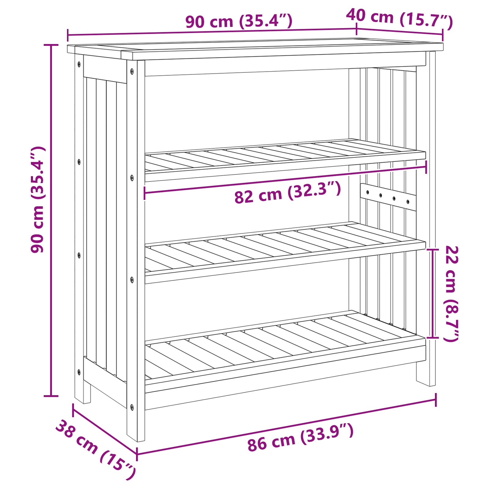 • Celkové rozměry: 90 x 40 x 90 cm (D x Š x V)