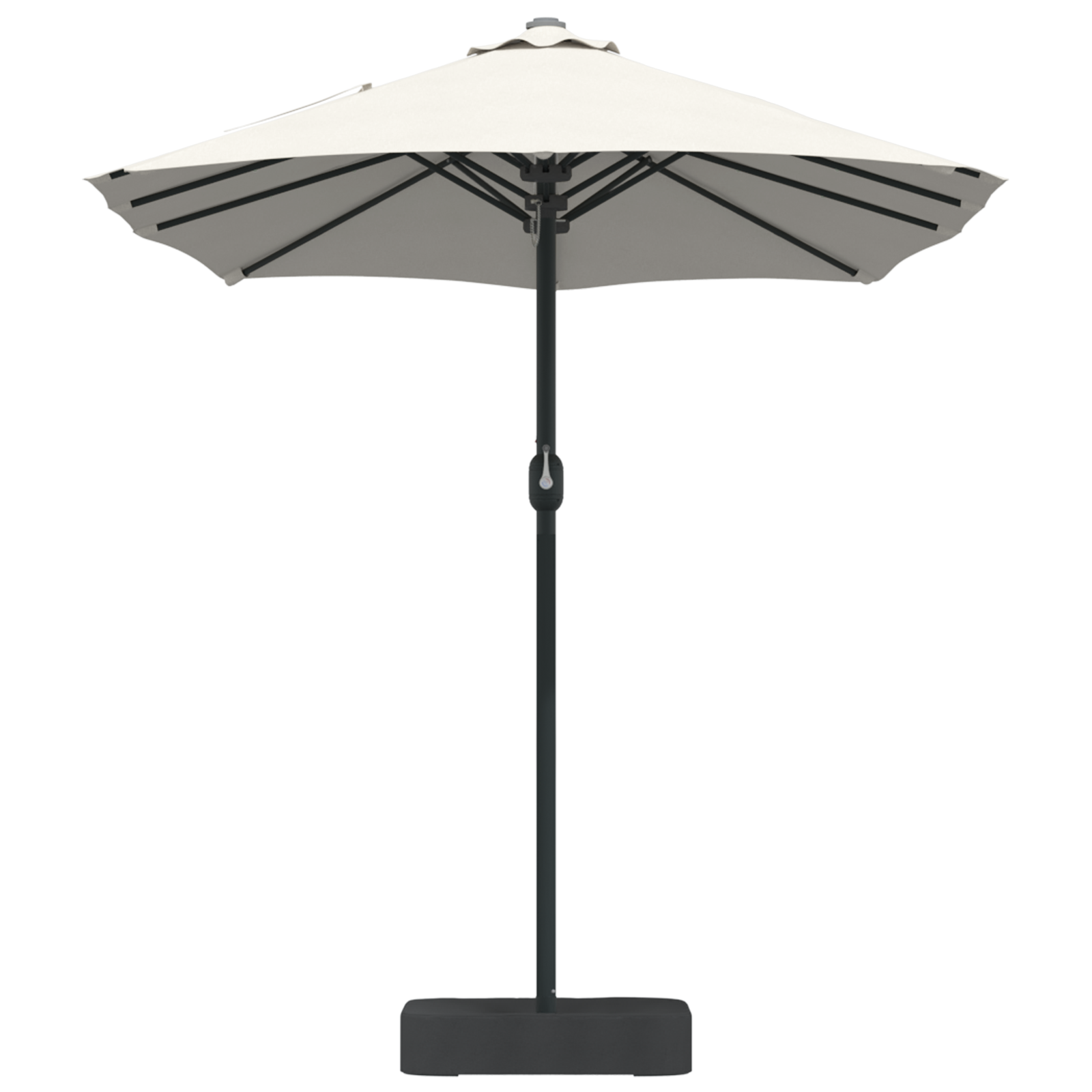 • Materiály: Prémiový polyester a pevná ocelová konstrukce, slunečník odolává povětrnostním vlivům. Polyester na UV ochranu, chrání před vyblednutím. Ocelová konstrukce zajišťuje stabilitu i při větru, poskytující stylové a spolehlivé venkovní stínění.