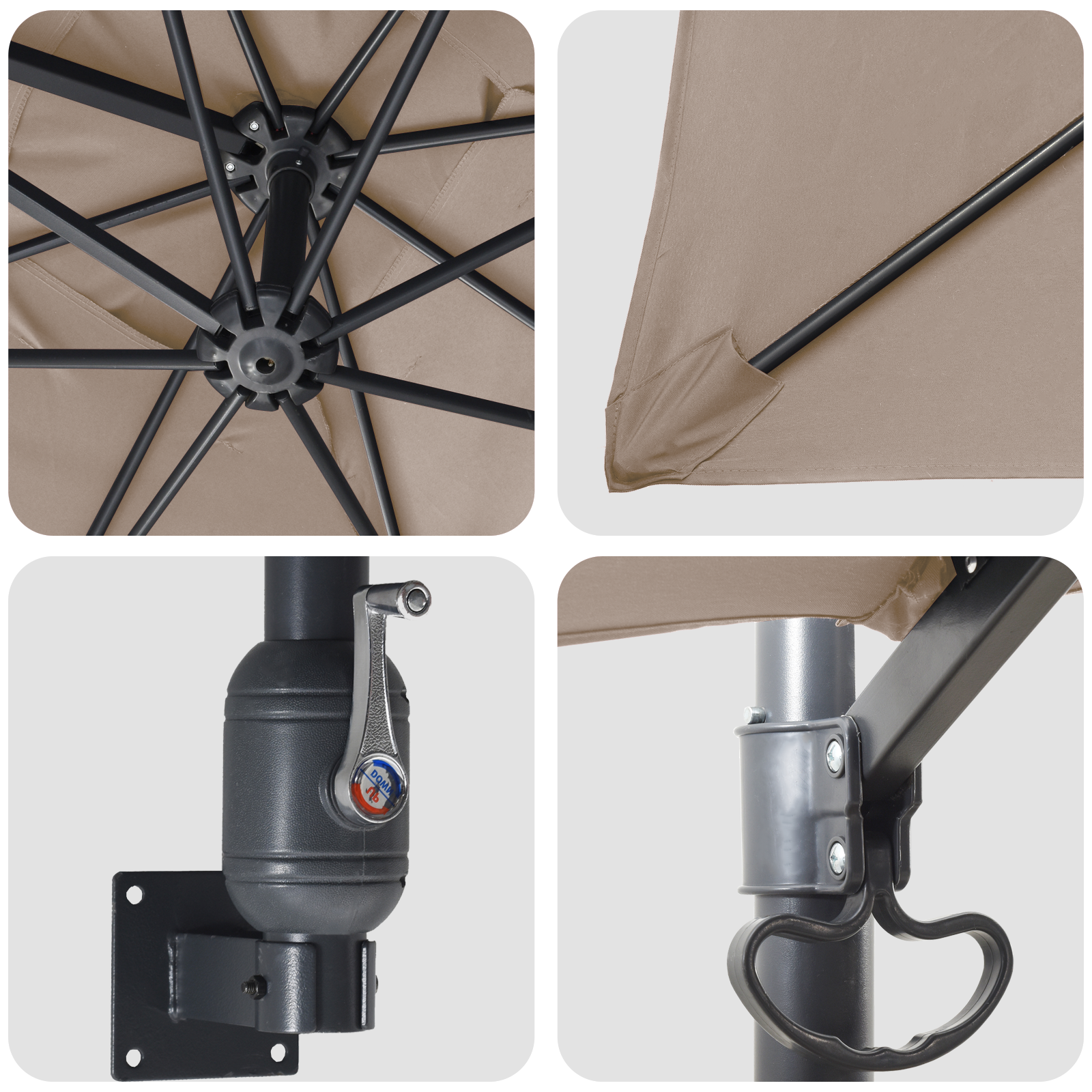 Zahradní slunečník Taupe 248,5 x 247,5 x 160 cm