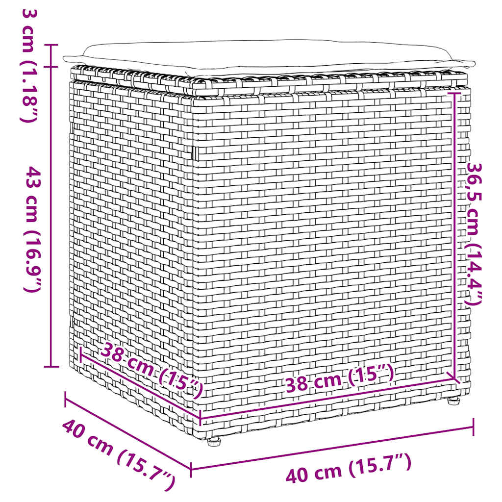 Zahradní stoličky s poduškami šedé 40x40x43 cm polyratan