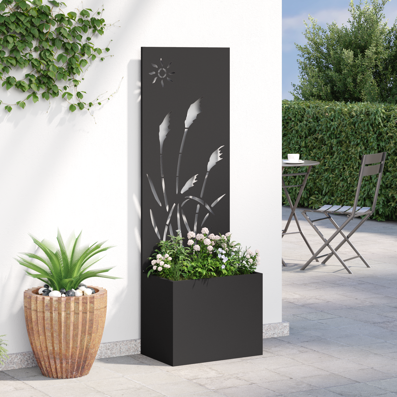 • Pevná ocelová konstrukce: Tato zahradní záclona je vyrobená z kvalitní oceli, která zaručuje dlouhou životnost a odolnost pro venkovní použití. Ocel zajišťuje, že přečká všechny povětrnostní podmínky a dodá vám soukromí a krásu po mnoho let.