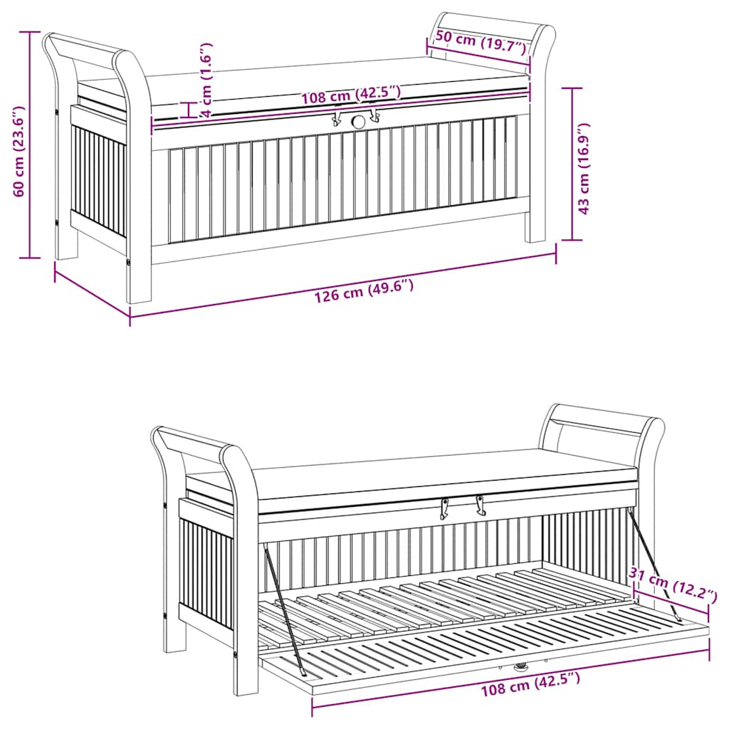 Zahradní úložná lavice s poduškou 126 cm masivní akáciové dřevo