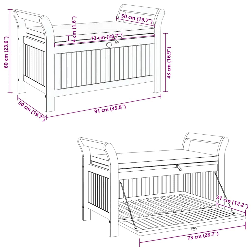 Zahradní úložná lavice s poduškou 91 cm masivní akáciové dřevo