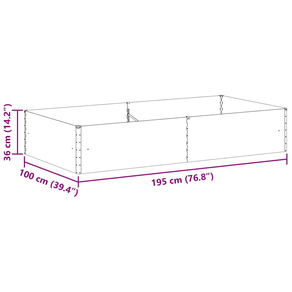 Zahradní vyvýšený záhon 195 x 100 x 36 cm Pozinkovaná ocel