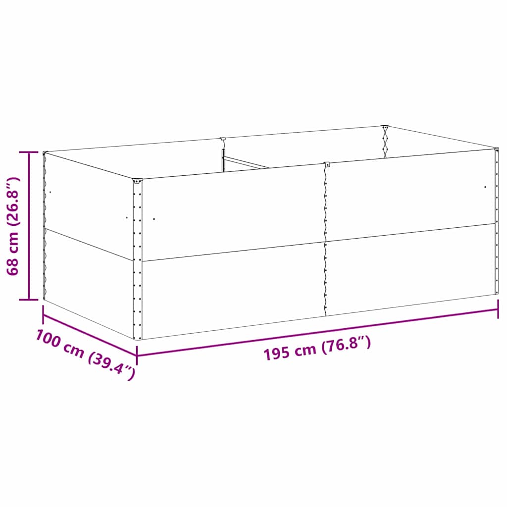 Zahradní vyvýšený záhon 195 x 100 x 68 cm Pozinkovaná ocel