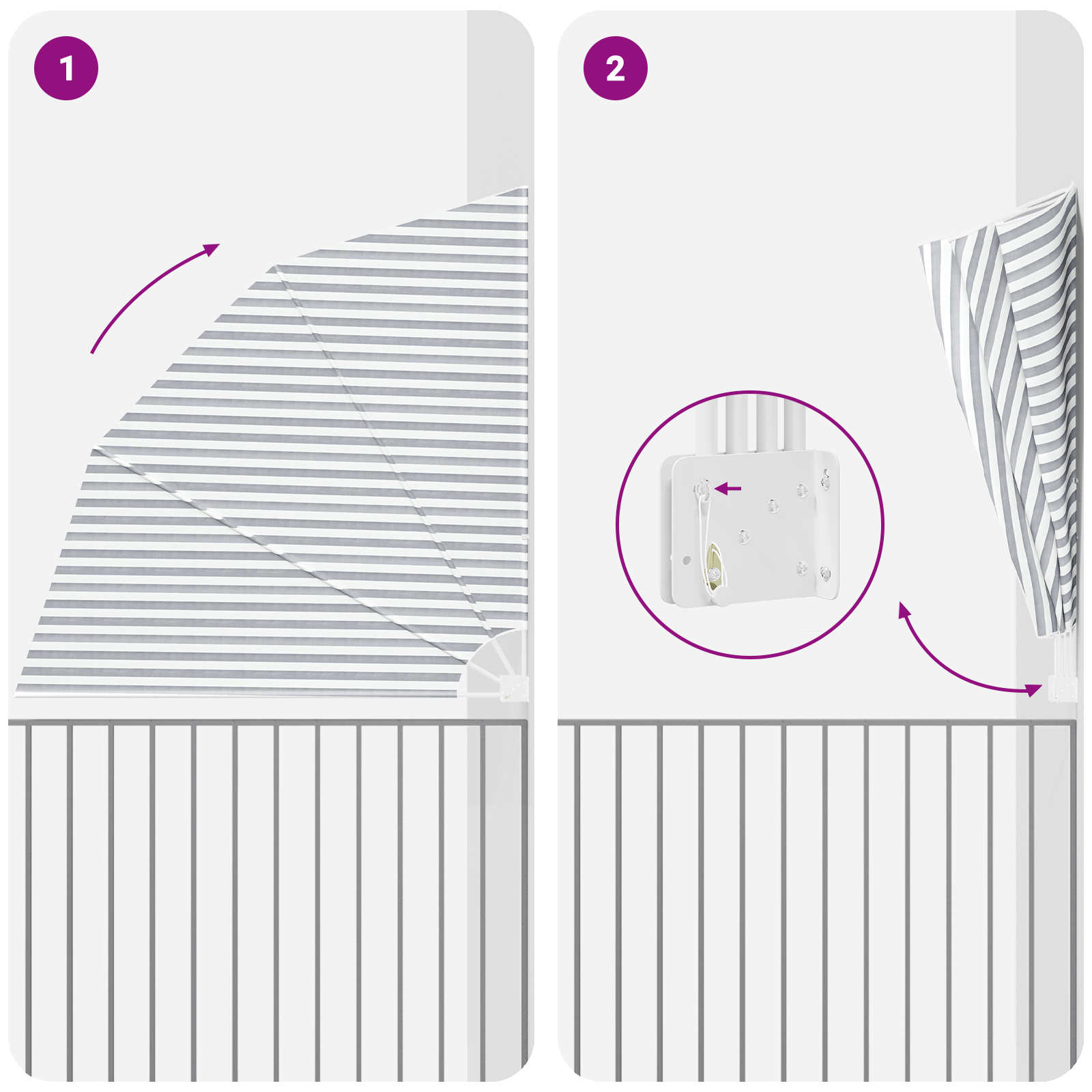 Moderní zástěna na balkon spojuje styl a funkčnost pro vaše venkovní prostory. Perfektně se hodí na balkony, zahrady a terasy, její design ve tvaru vějíře je jednoduchý a čistý, což potěší všechny, co ocení minimalistický styl. Pokud máte rádi soukromí, ale nechcete obětovat design, tato zástěna zlepší atmosféru vašich venkovních prostor tím, že vytvoří klidné a soukromé místo. Je to ideální přírůstek pro letní relaxaci nebo párty.