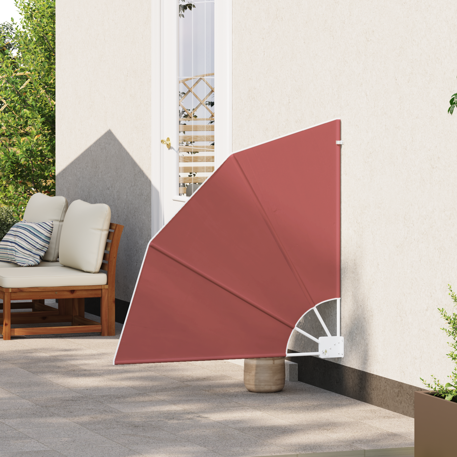• Prémiové materiály: Vyrobena z polyesteru a práškově lakované oceli, ta zástěna je pevná a navržená tak, aby odolávala opotřebení a počasí, včetně UV záření. Materiály zajišťují dlouhou životnost a líbivý vzhled, takže se stane stálicí ve vašem venkovním dekoru po celou sezónu.