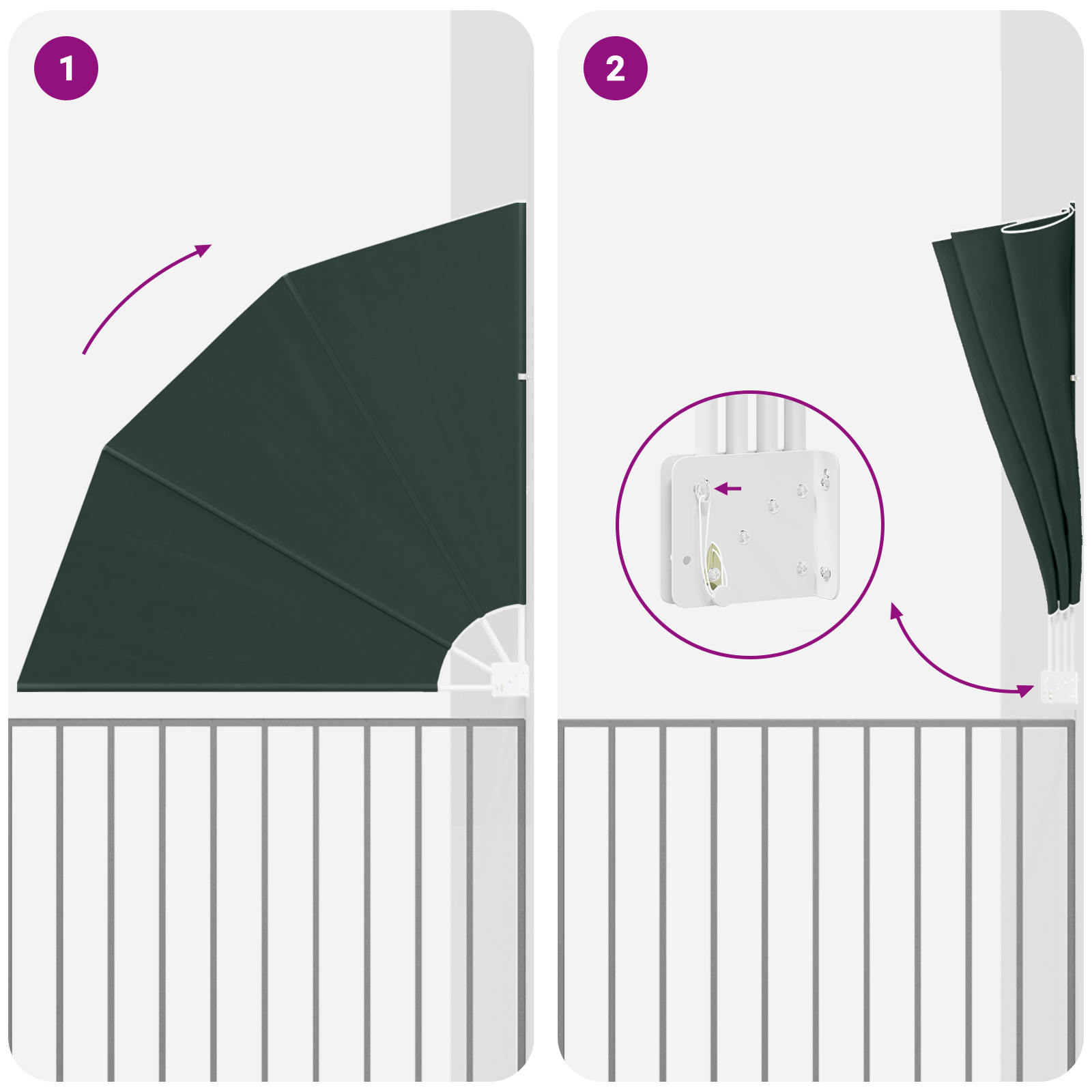 Moderní zástěna na balkon spojuje styl a funkčnost pro vaše venkovní prostory. Perfektně se hodí na balkony, zahrady a terasy, její design ve tvaru vějíře je jednoduchý a čistý, což potěší všechny, co ocení minimalistický styl. Pokud máte rádi soukromí, ale nechcete obětovat design, tato zástěna zlepší atmosféru vašich venkovních prostor tím, že vytvoří klidné a soukromé místo. Je to ideální přírůstek pro letní relaxaci nebo párty.