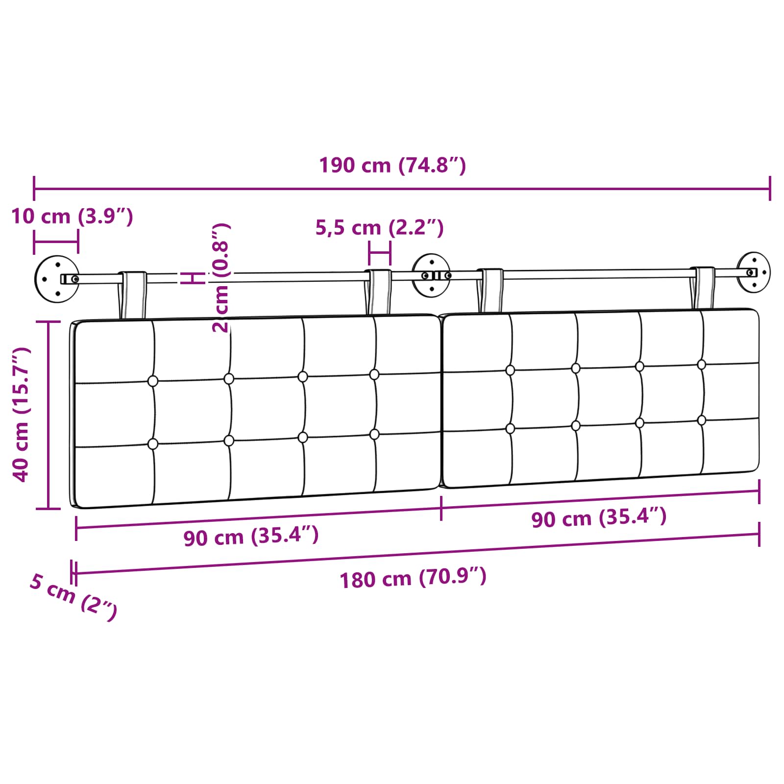 • Celkové rozměry: 190 x 55 x 5 cm (Š x H x V)