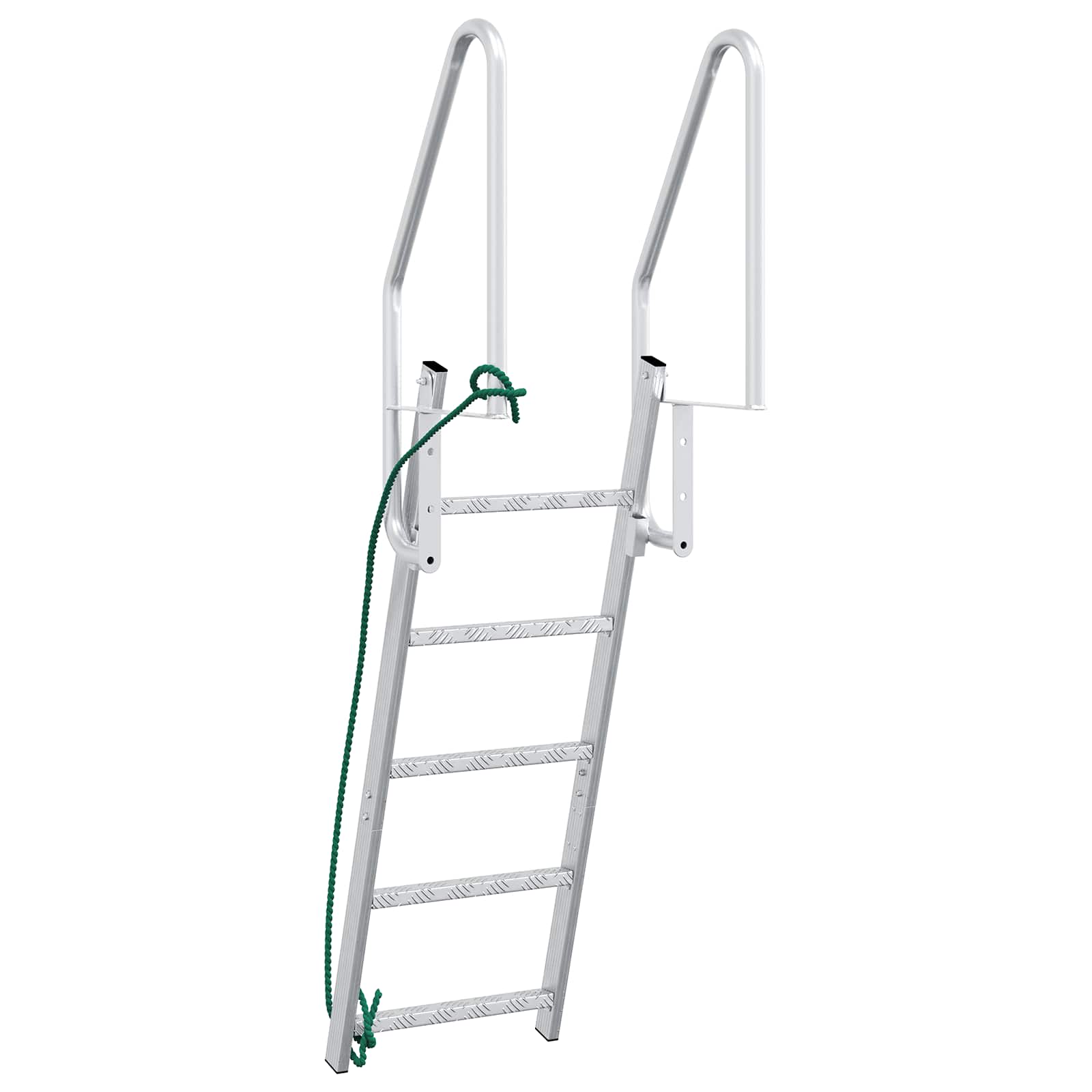 Tento přístavní žebřík vám poskytne bezpečný a praktický příístup k vaší lodi nebo molu. Moderní design vylepší vaše venkovní prostory a zajistí snadné nalodění a bezpečné sestupy. Možnost sklápění usnadňuje ukládání žebříku, k kdyby se zrovna nepoužíval.