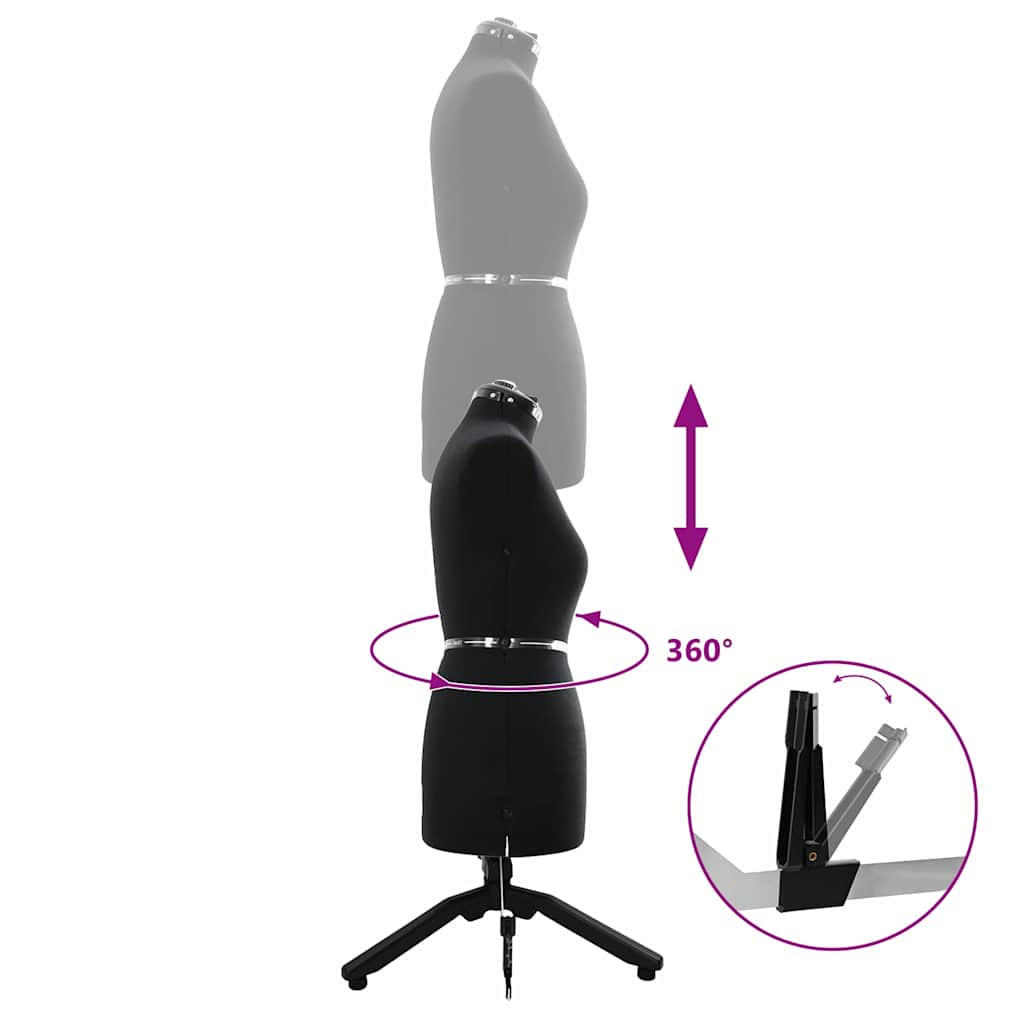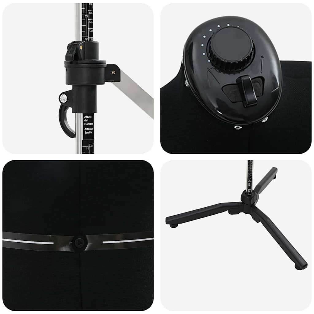 • Nastavitelné funkce: Figurína nabízí nastavení výšky od 95 do 160 cm a plnou rotaci o 360°, což ji činí použitelnou pro různé tvary těla a potřeby. Snadno se nastavuje, takže můžete rychle měnit velikosti pro různé typy oděvů, od blůz až po večerní šaty.